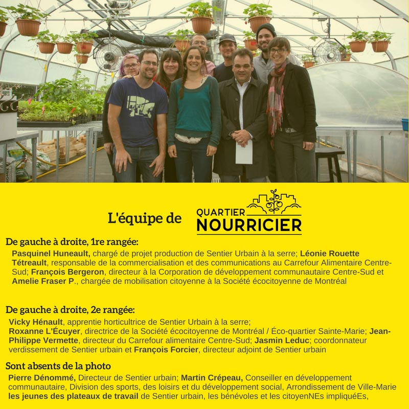 Je souhaite que Quartier nourricier soient encore plus qu’une serre communautaire, qu’un Marché Solidaire et qu’une pépinière. Que le Centre-Sud soit nourricier du carré d’arbre au toit verdoyant, de la cafétéria à la banque alimentaire, de l’éducation aux divertissements, des choix culturels à la découverte locale, et que les liens nourriciers se tissent dans la communauté.